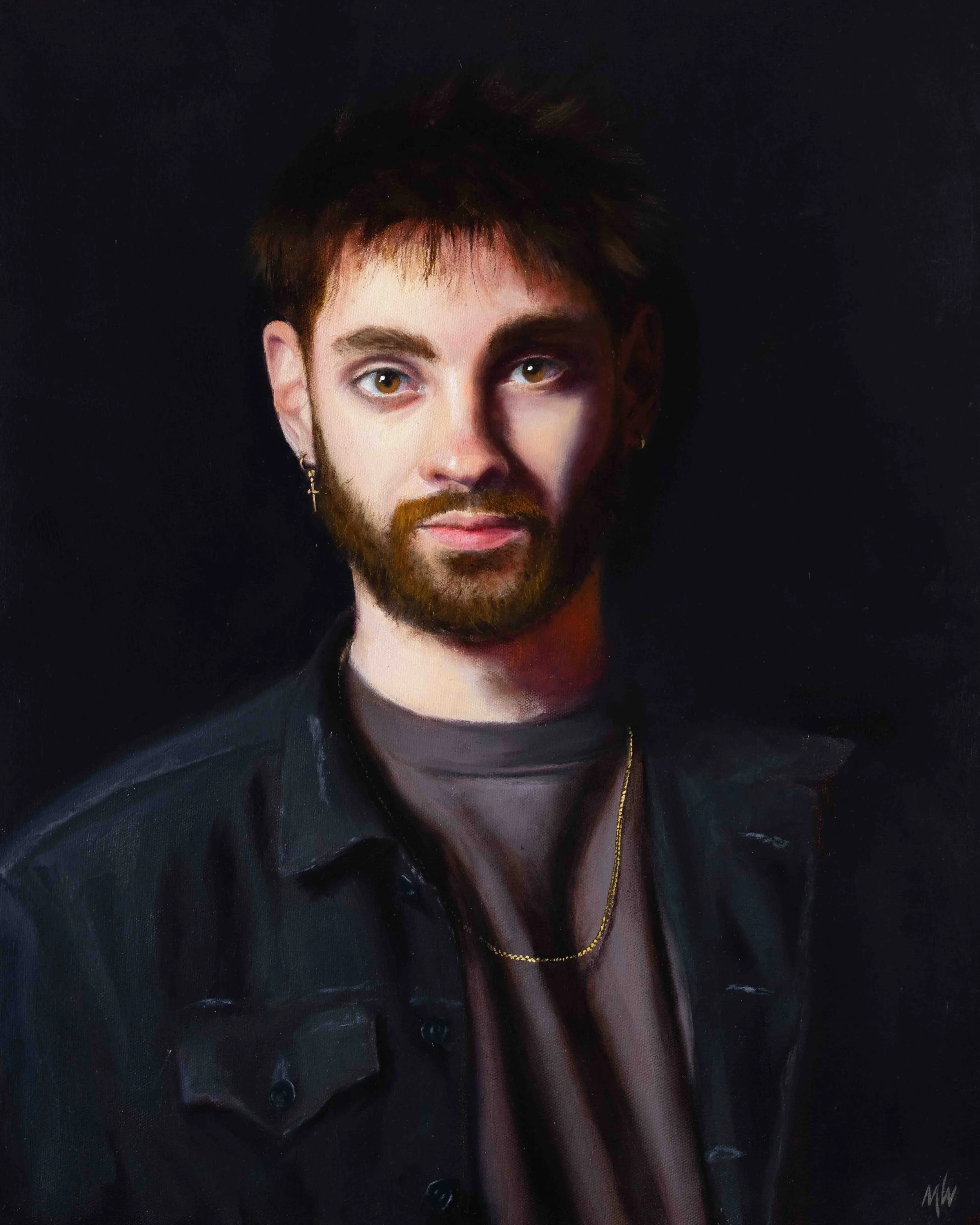 Mason’s background in filmmaking and cinematography shapes every painting: from the way the light falls, to the pacing of a gesture, to the emotional tension within the frame. These aren’t just portraits — they’re stories suspended in oil.